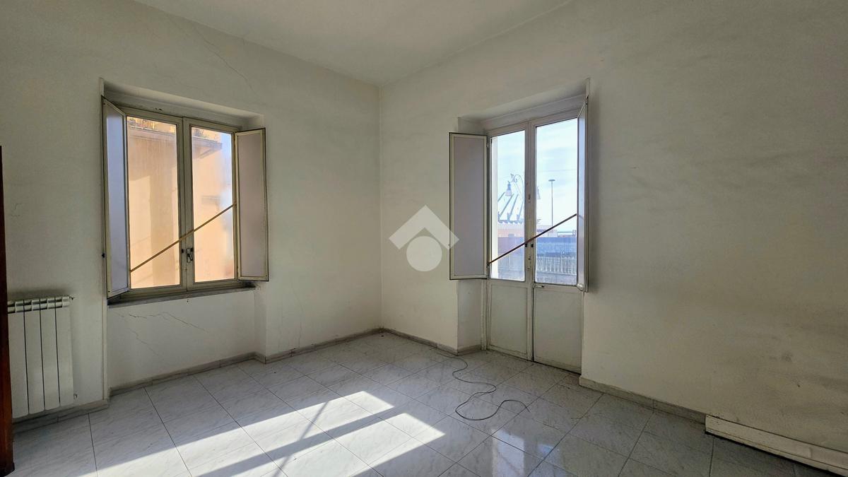 L'appartamento, in corso di parziale ristrutturazione è composto da ingresso, soggiorno con cucinotto separato, 2 ampie camere con balcone, bagno; affaccia su via Ligea di fronte al porto commerciale.
